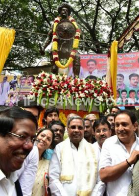 Photo Caption : CM Siddaramaiah with Minister Krishnappa, Manjunath Prasad, BBMP Commisisoner and others inaugurated the Statue of Sangolli Rayanna at Vijayanagar, during the inauguration of various BBMP development projects, in Bengaluru on Saturday 11th November 2017