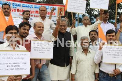 Members of Rastriya Kshatriya Maha Sabha staged a protest against the Film Padmavathi, for insulting the Sati Queen Padmavathi, directed by Sanjay Leela Bansali, and demanding to ban screening of the movie, as it hurts the sentiments of the Rajput Community, the protest was held at Freedom Park, in Bengaluru on Saturday 11th November 2017