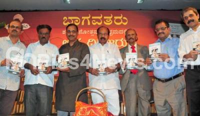 Photo Caption : Dr M Veerappa Moily, Former Union Minister with NR Vishukumar, Director, Kannada and Culture Dept Nadoja Prof K S Nissar Ahmed and others releasing “Asta Diggajaru†book at a program organised by Bhagavataru Trust at Nayana, in Bengaluru on Sunday 12th November 2017