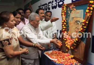 Photo Caption : Senior Congress leaders MV Rajashekaran, BL Shankar and others floral tribute to the portrait of Pandit Jawarharlal Nehru, on his Birth Anniversary Celebration at KPCC, in Bengaluru on Tuesday 14th November 2017