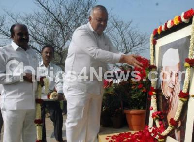 Photo Caption : Home Minister Ramalinga Reddy floral tribute to the portrait of Pandit Jawarharlal Nehru, on his Birth Anniversary Celebration at Vidhan Soudha, in Bengaluru on Tuesday 14th November 2017
