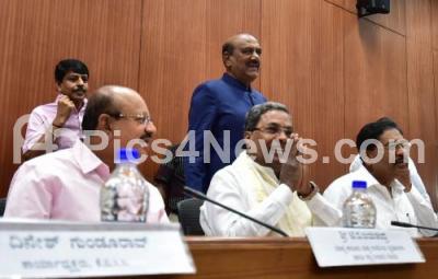 Photo Caption : CM Siddaramaiah with Home Minister Dr G Parameshwar and others at a meeting during the Winter Session in Belagavi, on Wednesday 15th November 2017