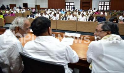 Photo Caption : CM Siddaramaiah with Home Minister Dr G Parameshwar and others at a meeting during the Winter Session in Belagavi, on Wednesday 15th November 2017