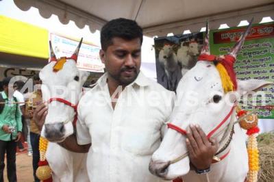 Photo Caption : Different varieties of cows on display during inauguration of “Krishi Mela 2017†at GKVK campus, in Bengaluru on Thursday 16th November 2017