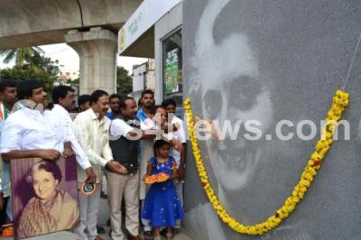 Event Description : Mayor Sampath Raj and Congress Leaders offering floral tribute to Former PM Indira Gandhi portrait on her 100th birth anniversary at Ward No 67, in Bengaluru on Sunday 19th November 2017