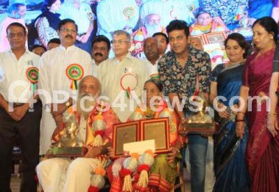 Photo Caption : Prakash Ambedkar, grandson of Dr BR Ambedkar with Actor Shivarajkumar, Geetha Shivarajkumar, H Vishwanath and others presented State Artist Award to Prasanna, Handloom Activist and Janapada Bangara Award to Sukri Bommagowda during the 85th Jayantosava Program of S Bangarappa, Former Chief Minister of Karnataka, the program was held at Palace Ground, organised by S Bangarappa Foundation, in Bengaluru on Saturday 25th November 2017
