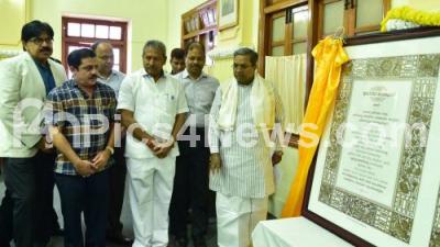 Photo Caption : Chief Minister Siddaramaiah unveiling the plaque containing the preamble of the Constitution to mark the Constitutional Day seen administering Constitution Pledge to students, Youths, Officials of the secretariat at Conference Hall, Vidhana Soudha, also seen are Chief Secretary S C Kunthia, H M Revanna, Minister, MLAs Zameer Ahmed Khan, Byrathi Basavaraj and others, in Bengaluru on Sunday 26th November 2017