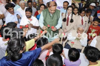 Photo Caption : Union Minister Ananth Kumar with Adamya Chetana Founder Tejaswini Ananth Kumar and students during 100th Green Sunday celebration at Jayanagar, in Bengaluru on Sunday 26th November 2017