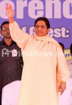 Photo Caption : Former Chief Minister of Uttar Pradesh Mayawati seen during Bahujan Samaj Party Workers conference of South India at Central College Grounds, in Bengaluru on Sunday 26th November 2017