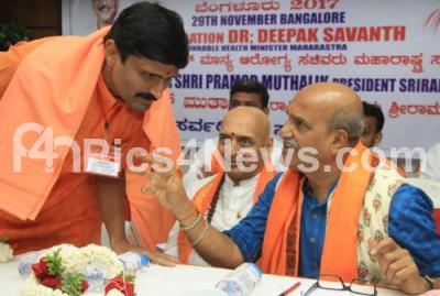 Pramod Muthalik seen with Raghunath Guruji and others seen at the Karnataka Hindu Leaders Meet 2017 at Hotel Citadel, in Bengaluru on Wednesday 29th November 2017