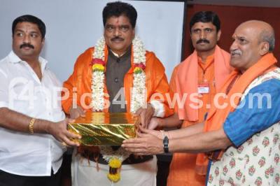 Photo Caption : Dr Deepak Sawant, Health Minister of Maharashtra being felicitated by Pramod Muthalik, Raghunath Guruji and others during the Karnataka Hindu Leaders Meet 2017 at Hotel Citadel, in Bengaluru on Wednesday 29th November 2017
