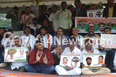 Event Description : Congress workers staged a protest against the Karnataka BJP leaders for claiming false allegations against Congress Ministers Vinay Kulkarni and KJ George, in Bengaluru on Friday 1st December 2017
