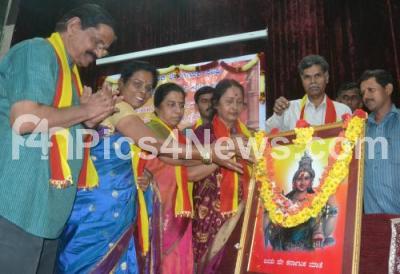 Photo Caption : Dr Vasundhara Bhupathi with BR Lakshman Rao, Tamil Selvi and others floral tribute to the portrait of Lord Bhuvaneshwari during the Kannada Rajyotsava program at Seshadripuram College, organised by Karnataka Writers Association, in Bengaluru on Friday 1st December 2017