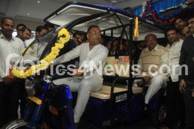 Photo Caption : Transport Minister HM Revanna with MLA Dinesh Gundu Rao launched the Eco Friendly E Rickshaw at Maheshwari Bhavan, Oakalipuram, in Bengaluru on Friday 1st December 2017