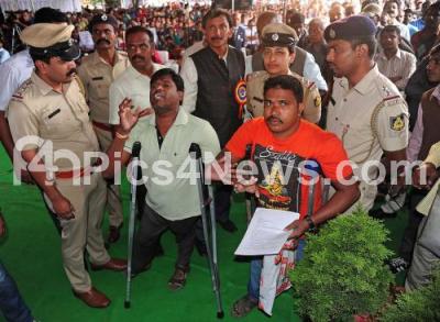 Photo Caption : Disabled people protesting during inauguration of World Disabled Day 2017 program at Freedom Park, in Bengaluru on Sunday 3rd December 2017