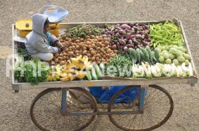 Young Vegetable Businessman on a Push Cart