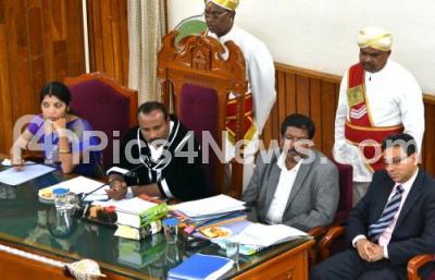 Photo Caption : BBMP Mayor Sampath Raj with Deputy Mayor Padmavathi, BBMP Commissioner Manjunath Prasad and BBMP Councilors during a BBMP council at BBMP, in Bengaluru on Tuesday 12th December 2017