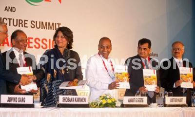 Photo Caption : Union Minister of Heavy Industries and Public Enterprises, Anant G Geete with Amitabh Kant, CEO, Niti Aayog, GOI, Hari Sankaran, Chairman CII National Committee on Infrastructure and PPP, Shobana Kamimemi, President CII and others seen releasing a brochure during the inauguration of the EXCON 2017 and Infrastructure Summit at Bangalore International Exhibition Center (BIEC) at Tumkur Road, in Bengaluru on Tuesday 12th December 2017