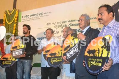 Photo Caption : Justice Santhosh Hegde, Former Lokayukta with Actor Sudeep, Justice AJ Sadashiva and others felicitated farmers and launched the logo in respect of farmers at Press Club, organised by We Respect Farmers Trust, in Bengaluru on Wednesday 13th December 2017