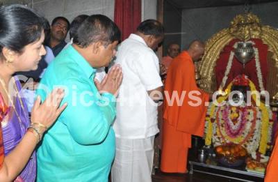 Photo Caption : JDS President HD Kumarswamy on his 59th Birthday celebration performing pooja with Nirmalanandanatha Swamiji and MLA Gopalaiah and others at at Adichunchanagiri Math, in Bengaluru on Saturday 16th December 2017