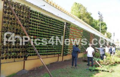 Photo Caption : Preparations for the Grand Flower Show underway at Mysore Palace, as part of the Mysuru Winter Festival 2017 in Mysuru on Friday 22nd December 2017