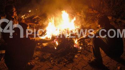 Warm Up: - Boys burn garbage to get warmth to beat the cold near Press Club, in Bangalore on Thursday 6th Dec 2007.