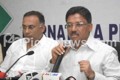 Photo Caption : KPCC Working President Dinesh Gundu Rao and Congress Leader Ugrappa addressing press conference at KPCC, in Bengaluru on Monday 25th December 2017