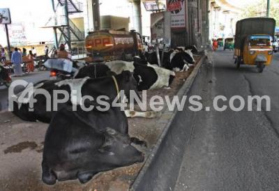 Event Description : Cows sleeping on the road divider near Ulsoor, in Bengaluru on Monday 1st January 2018