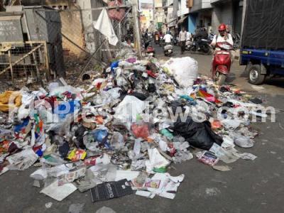 Photo Caption : Garbage dumped on the road side at Commercial Street near Shivaji Nagar, in Bengaluru on Monday 1st January 2018