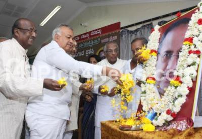 Photo Caption : Home Minister Ramalinga Reddy with Go Ru Channa Basappa, Nagarajmurthy and others offering floral tribute to Former Minister Mahadeva Prasad during his death anniversary program at JSS, in Bengaluru on Wednesday 3rd January 2018