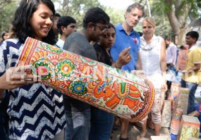 Photo Caption : Thousands of artistes paintings attraction to the visitors during “Chitra Sante 2018†at Kumara Krupa Road, in Bengaluru on Sunday 7th January 2018