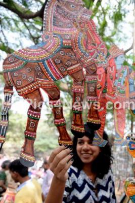 Photo Caption : Thousands of artistes paintings attraction to the visitors during “Chitra Sante 2018†at Kumara Krupa Road, in Bengaluru on Sunday 7th January 2018