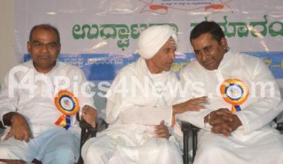 Prof S G Siddaramaiah, President, Kannada Development Authority with Writer Dr Ramzan Darga, Siddarama Belvala Sharanaru and Omkara S C, President, Vishwaguru Basavanna Anuyayigala Okkuta during the inauguration of Vishwaguru Basavanna Anuyayigala Okkuta at Scouts and Guides, in Bengaluru on Sunday 7th January 2018