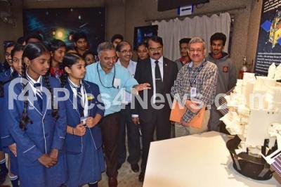 Photo Caption : Dr M Annadurai, Director, ISRO Satellite Centre, Bangalore with school students inaugurated the “AstroSatâ€, an exhibition on India first dedicated multi wavelength space observatory at Jawaharlal Nehru Planetarium, in Bengaluru on Tuesday 9th January 2018