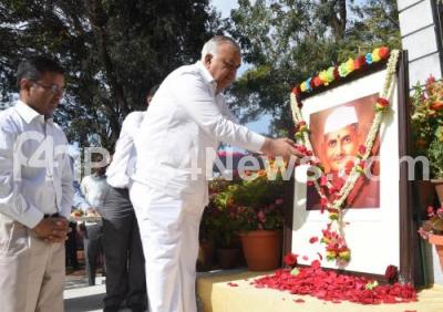 Photo Caption : Minister Ramalinga Reddy tribute to the portrait of Lal Bahadur Shastri, on his 52nd Death Anniversary at Vidhan Soudha, in Bengaluru on Thursday 11th January 2018