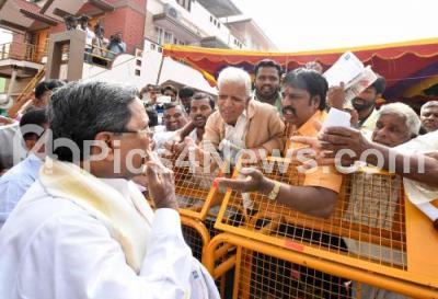Photo Caption : CM Siiddaramaiah seen at the Janatha Darshan in Mysuru on Friday 12th January 2018