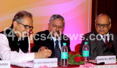 Photo Caption : Justice HL Dattu with Dr Devi Prasad Shetty, Justice PC Ghose seen at the National Conference on “Business and Human Rights†at BHEL, organised by National Human Rights Commission and BHEL, in Bengaluru on Friday 12th January 2018