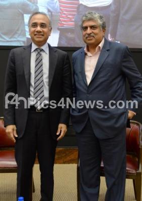 Photo Caption : Infosys Non Executive Chairman Nandan Nilkeni and Newly appointed Infosys CEO Salil Parekh seen during Infosys Q3 results at Infosys campus, in Bengaluru on Friday 12th January 2018