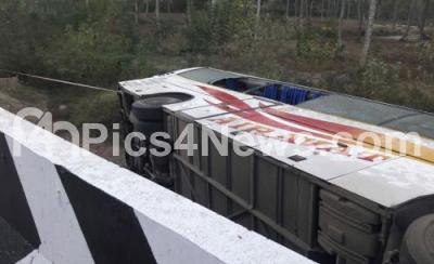 Event Description : Mangled remains of the KSRTC Airavat Bus which met with an accident near Shantigrama early morning, the bus was heading towards Dharmastala from Bengaluru, 11 people were killed in the accident and 30 persons injured, on Saturday 13th January 2018