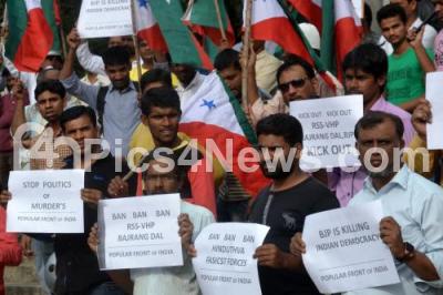 Members of Popular Front of India (PFI) staged a protest against the BJP at Town Hall, in Bengaluru on Saturday 13th January 2018