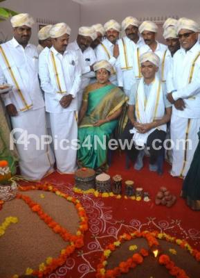 Agriculture Minister of GoK Krishna Byregowda and Social Welfare Minister of GoK Umashree during "Suggi Huggi" Sankranti celebrations with Millets organised by Dept of Agriculture at Lalbagh, in Bengaluru on Sunday 14th January 2018