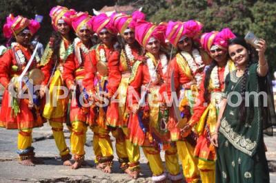 Photo Caption : Folks artistes performing dance during "Suggi Huggi" Sankranti celebrations with Millets organized by Dept of Agriculture at Lalbagh, in Bengaluru on Sunday 14th January 2018