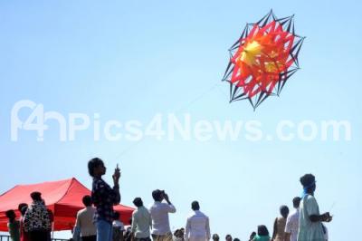 People flying kites during "Suggi Huggi" Sankranti celebrations with Millets organized by Dept of Agriculture at Lalbagh, in Bengaluru on Sunday 14th January 2018