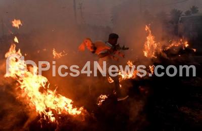 Event Description : Cattles seen jumping over the fire on the occasion of Makara Sankranti Festival in Msyuru on Sunday 14th January 2018