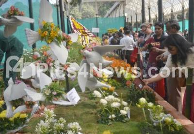 Photo Caption : Visitors enjoying the Republic Day Flower Show at Labagh, in Bengaluru on Friday 19th January 2018