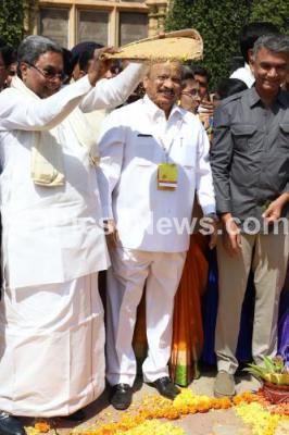 Event Description : CM Siddaramaiah with Minister Krishna Byre Gowda, Union Minister DV Sadananda Gowda, Minister Roshan Baig and others inaugurated the “organics and Millets 2018, International Trade Fair” at Palace Grounds, in Bengaluru on Friday 19th January 2018