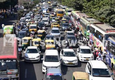 Photo Caption : Major traffic jam at Seshadri road due to various protests at Freedom Park, in Bengaluru on Saturday 20th January 2018