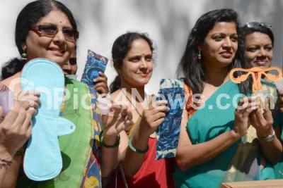Photo Caption : Members of Green the Red display the menstrual products during press conference to campaign to promote sustainable, new age menstruations products at press club, in Bengaluru on Tuesday 23rd January 2018