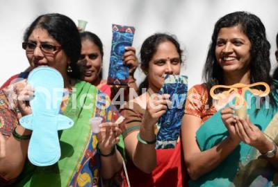 Photo Caption : Members of Green the Red display the menstrual products during press conference to campaign to promote sustainable, new age menstruations products at press club, in Bengaluru on Tuesday 23rd January 2018