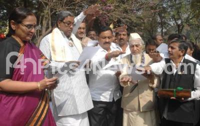 Photo Caption : CM Siddaramaiah with Chief Secretary Ratna Prabha and others taking oath during 121st birth anniversary of Subhash Chandra Bose at Vidhana Soudha, in Bengaluru on Tuesday 23rd January 2018
